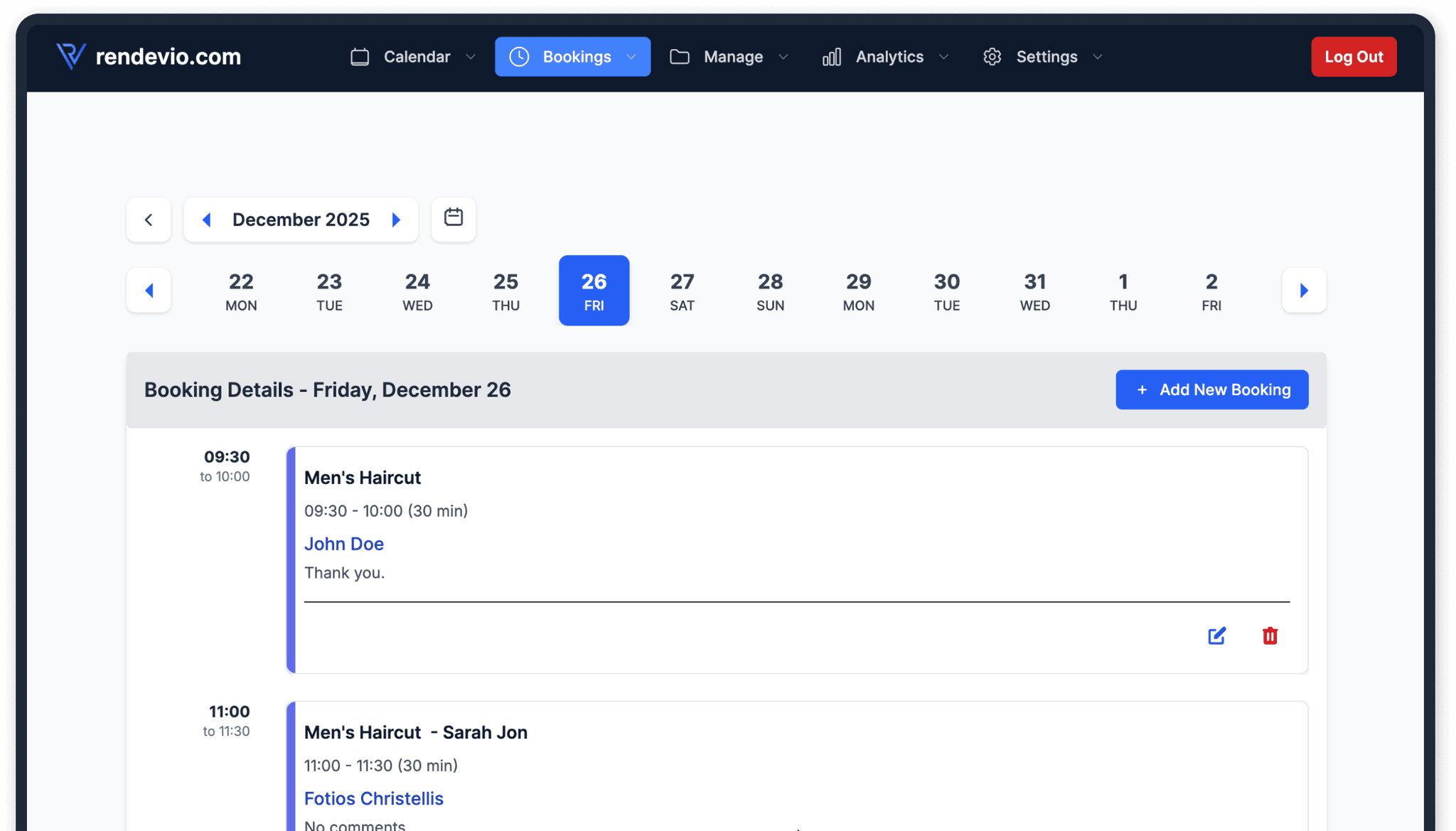 Yes! Rendevio includes built-in analytics and lets you export your bookings to Excel. Track your busiest days, monitor no-shows, and see your growth over time.